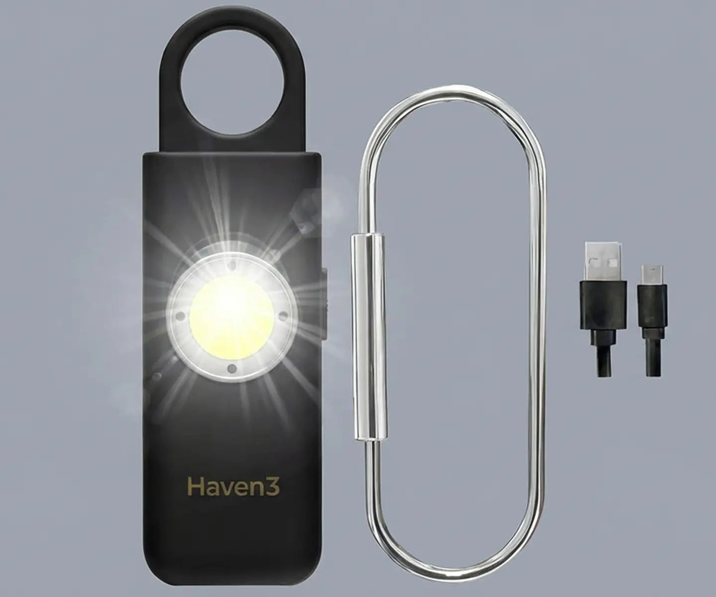 Crafted with a durable, lightweight design, Haven3 attaches easily to your keys, handbag, gym bag, or pram using the secure metal clip. It’s discreet enough for everyday carry yet strong enough for real‑world situations. Long‑life rechargeable battery ensures your device is always ready when you need it — with up to 6 months standby battery life.